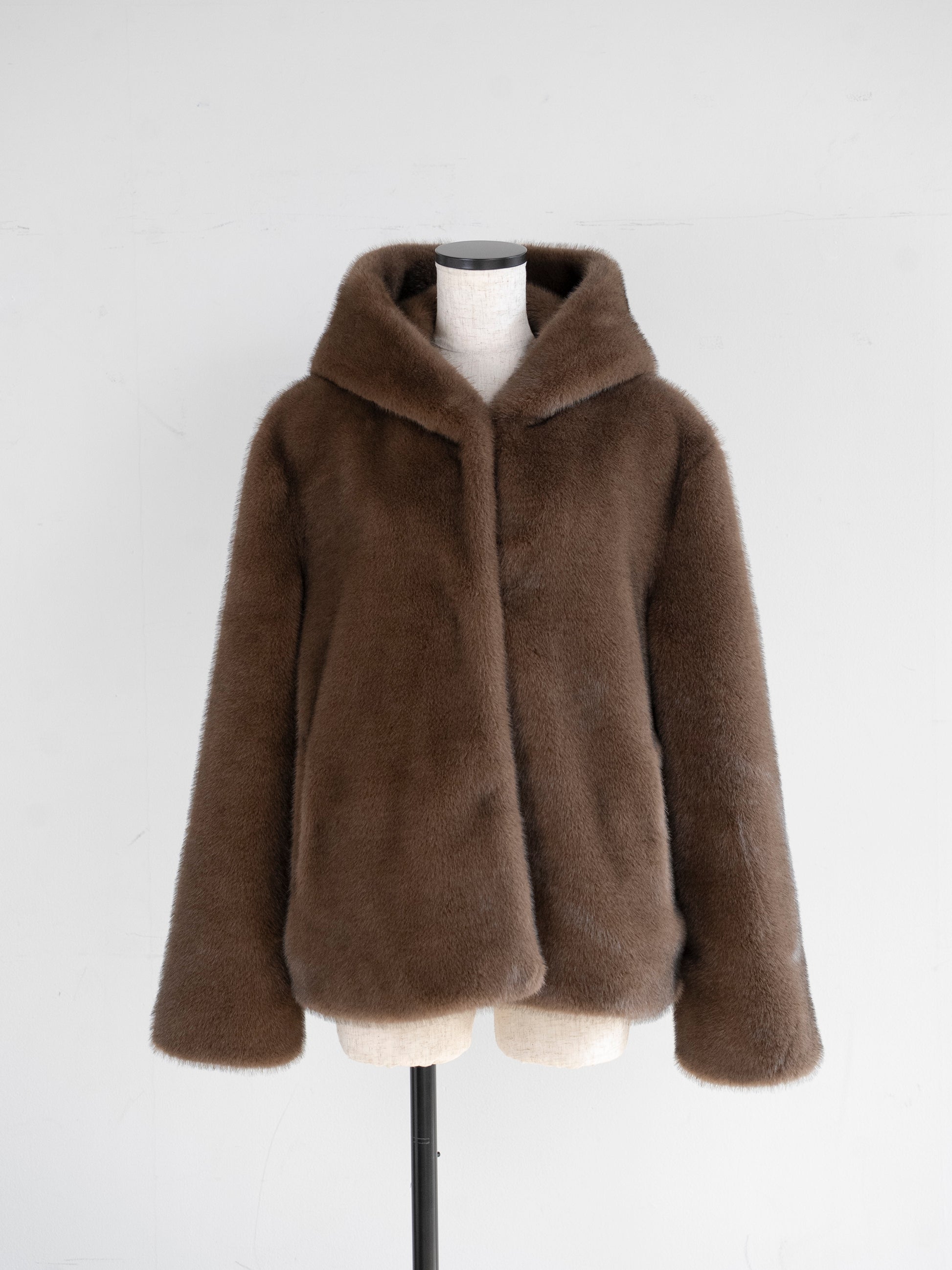 Eco fur hood coat / brown