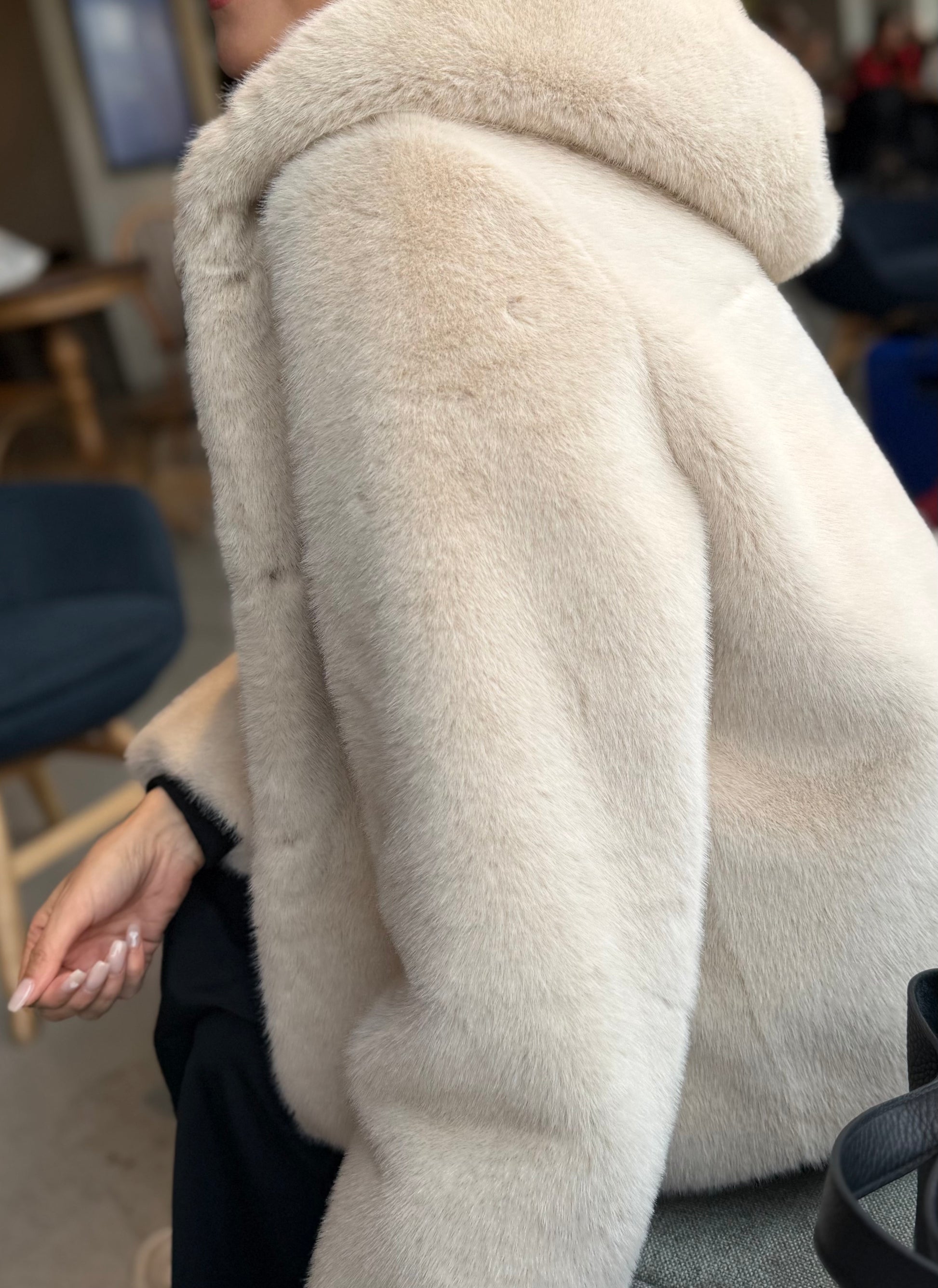 Eco fur hood coat / beige